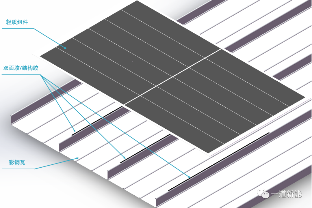 自2018年成立到现在,一道新能致力于为全球客户提供最优质的产品和服务,自主研发的轻质化柔性组件重新盘活了大量因承重问题而无法安装和应用光伏的屋顶。在无法生根安装的情况下,一道新能轻质化PERC组件创新采用胶带或结构胶快速粘贴的安装方式,免打孔,不漏水,不对屋面造成任何损坏。除4.3kg/㎡的组件自重外,安装基面无需承载额外的支架重量,更适应载重弱的屋顶,如轻钢结构屋顶、户用瓦顶。