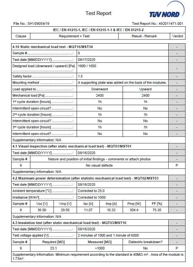 一道新能轻质组件顺利通过TÜV北德静态机械载荷测试