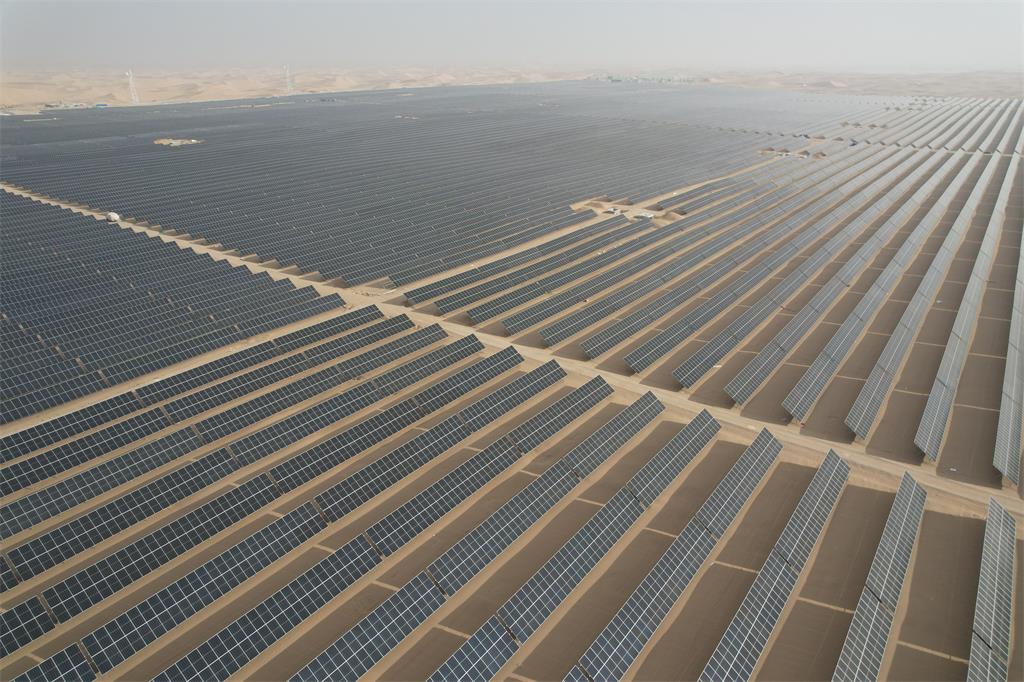 光伏治沙为实现“双碳”目标赋能,让千古荒漠里生机无限。每一个光伏板下面,是一块块麦草方格。草方格阻挡了沙子流动,同时能将空气中的水分子保持在沙层表面,一定程度上为浅根性植物生长提供了水分供应。