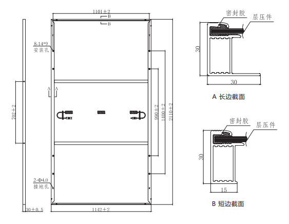 | 组件尺寸 | 2110×1142×30mm |
