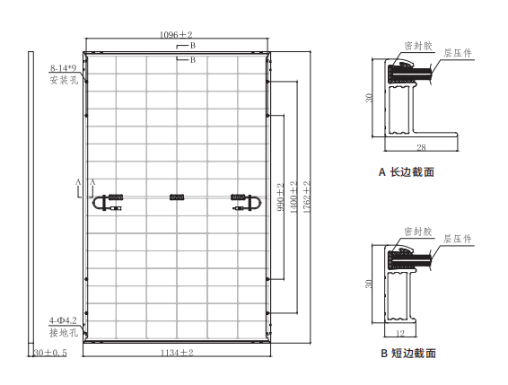 | 组件边框 | 阳极氧化膜铝合金(黑色) |