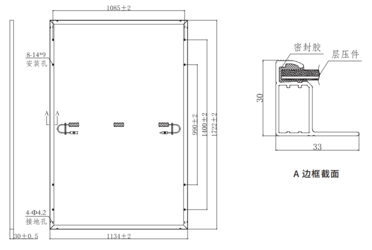 | 组件尺寸 | 1722×1134×30mm |