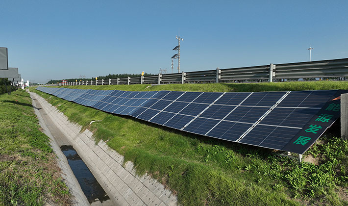 充分开发利用土地价值,“轻质组件+柔性支架”的综合应用,使得光伏系统具备安全、高效运维等优势,并广泛适用于隧道口、匝道圈等关联场景,目前已于山东省部分高速路段南向边坡投入应用。