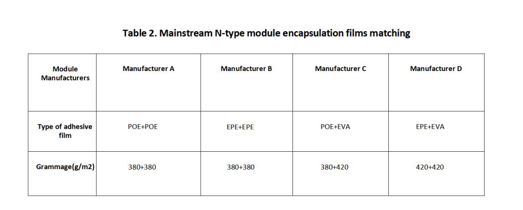 Based on an extensive comparison of encapsulation film combinations for N-type modules, POE offers distinct advantages, particularly in the following aspects:
