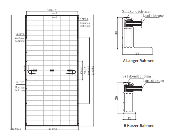 Zweiseitige, doppelt verglaste Module, symmetrische Bauweise, geringes Risiko von versteckten Rissen.