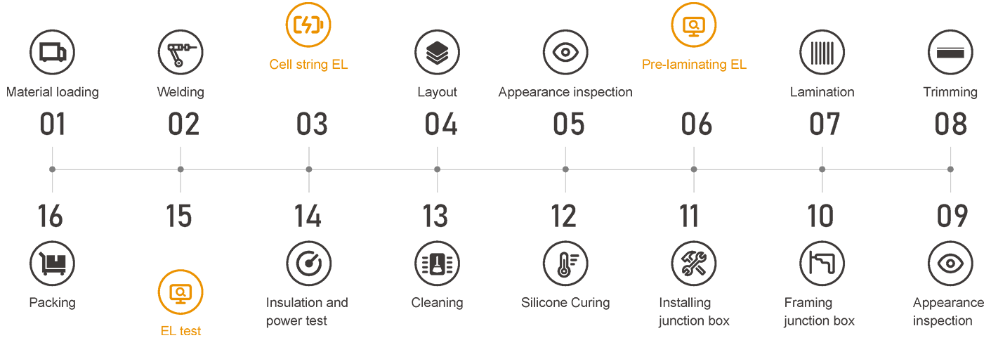 Umfassende Qualitätskontrolle vom Materialeingang bis zum Produkt, Erreichung der vollständigen Einbeziehung bei der Qualitätskontrolle für jeden Prozess, Patrouilleninspektionen durch Inspektoren vor Ort und 100%-ige KI-gestützte Inspektionen an Schlüsselpositionen mit automatischer Erkennung.
