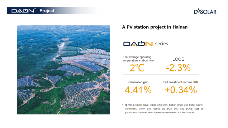 DAS Solar modules have demonstrated outstanding performance in multiple outdoor tests and N-type products shipments rank among the Top 3 globally. DAS Solar will continue to contribute to global green and sustainable development through technological innovation in the future.
