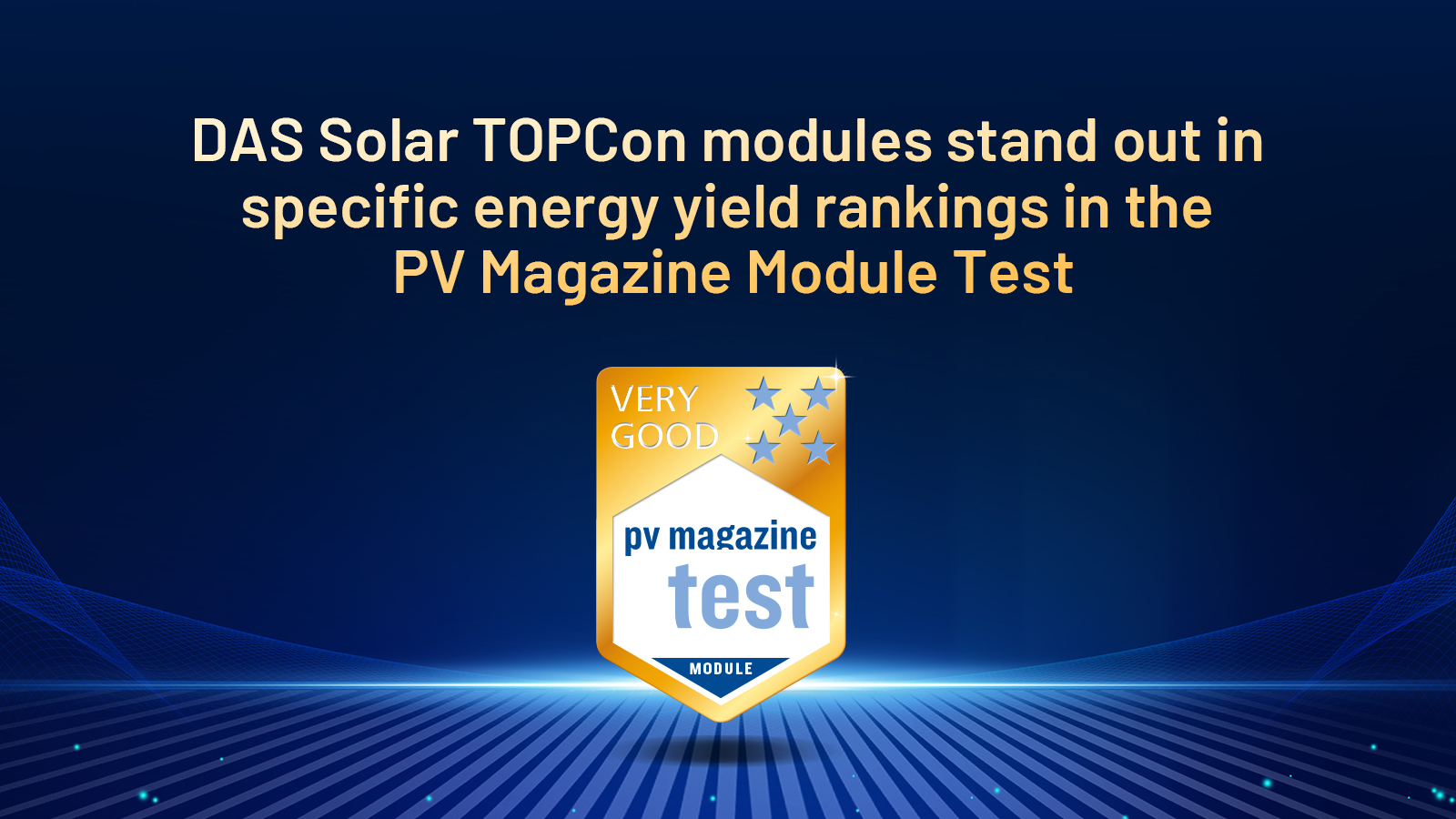 DAS Solar TOPCon modules stand out in specific energy yield rankings in the PV Magazine Module Test