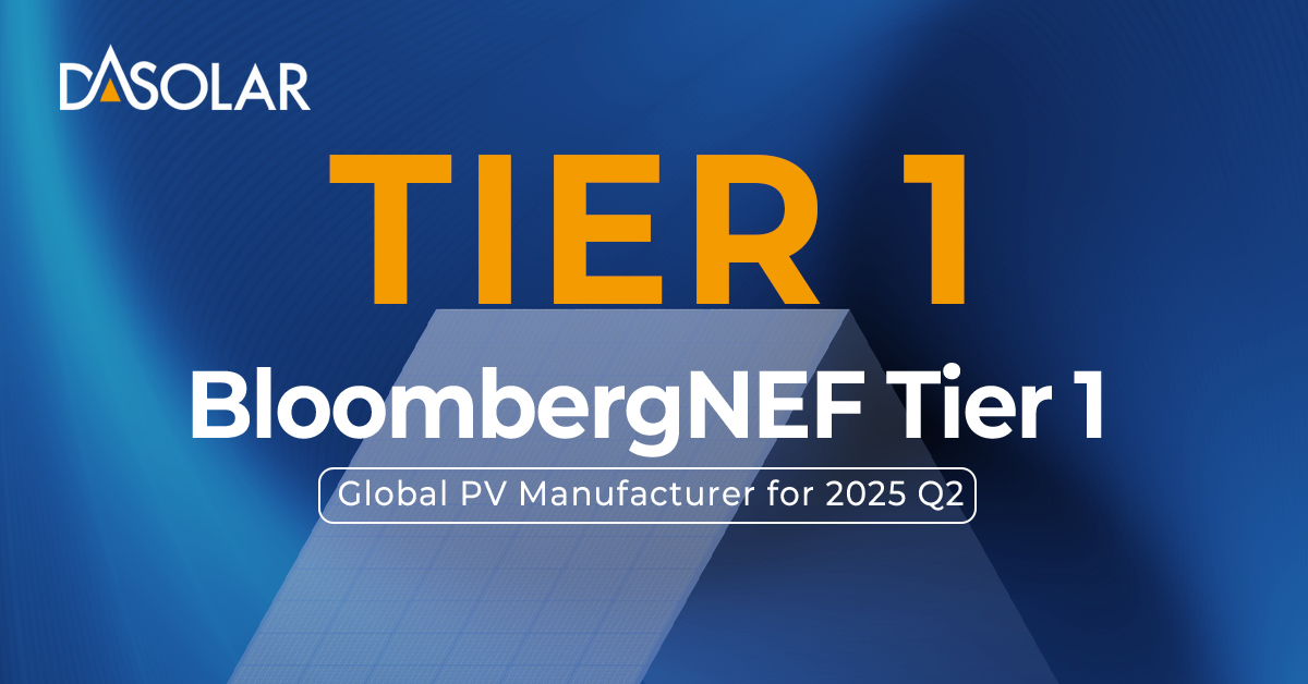 DAS Solar Continues to Rank Among BNEF's Tier 1 PV Module Manufacturers