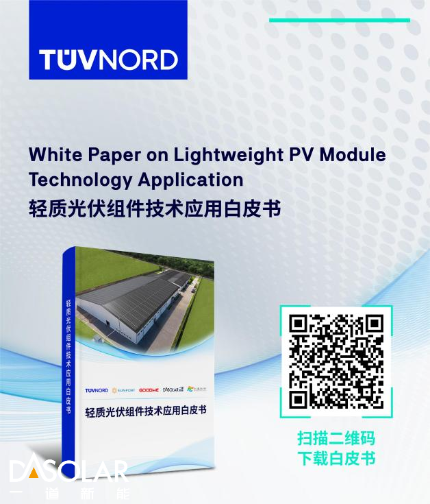 Low-carbon development has become an inevitable trend in the construction industry, and the distributed photovoltaic market is overgrowing. Lightweight modules have become increasingly important in full-scenario applications due to the low carbon footprint, lightweight, and ease of installation. However, lightweight modules face several technical challenges and reliability concerns in practical applications, such as strong winds, heavy snow, and hail, as well as fire and water resistance. Driven by an unwavering pursuit of stringent quality standards, TÜV Nord collaborated with DAS Solar, SUNPORT, GoodWe, and Hondol Material, has co-authored the "White Paper on Lightweight PV Module Technology Application." The goal is to increase the safety and reliability of lightweight modules.