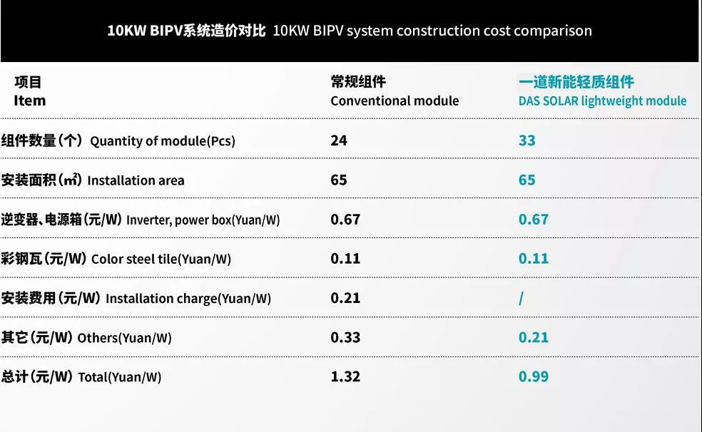 在光伏系统造价成本快速下降的当下,BIPV组件产品开始具备直接代替工厂彩钢瓦屋顶的经济性。而轻质组件应用场景丰富,对屋顶的载荷要求低,以一道新能为代表的轻质化PERC叠瓦组件产品将是未来占据BIPV市场的黑马。