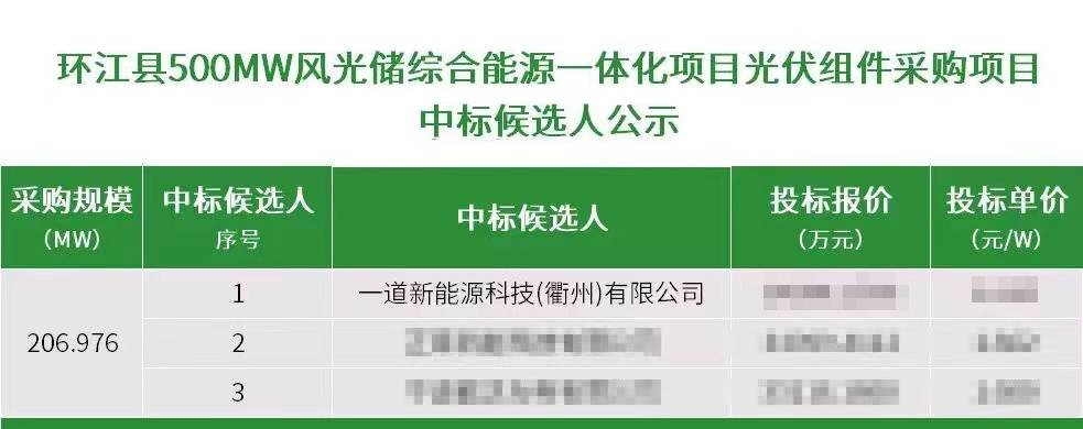 近日,中核工业环江县风光储综合能源一体化组件采购项目中标候选人公示,一道新能以第一候选人身份中标。