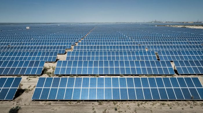 猎猎长风、黄沙漫漫;人迹罕至、寸草不生,这是昔日茫茫戈壁给人留下的固有印象,而随着光伏发电的兴起,贫瘠的荒滩沙漠一改往昔模样化身科技感十足的“蓝色海洋”。走进新疆阿克苏市阿瓦提县城西南侧的粤水电阿瓦提400 MW光伏+储能市场化项目区内,充足的日光倾泻而下,一百多万片光伏组件纵横交错、向阳而列,泛出粼粼波光,源源不断的光伏电能便从这里输出,穿越荒沙戈壁,点亮万家灯火。