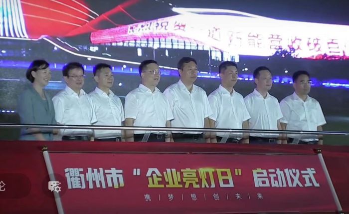 千屏齐点亮,满城一日庆。7月27日晚,衢州市隆重举行“企业亮灯日”活动启动仪式。随着 启动杆的落下,“热烈祝贺一道新能营收破百亿——中共衢州市委、衢州市人民政府!”字幕在市文化艺术中心和便民服务中心、行政中心以及衢州高铁站、飞机场、高速路口及各县(市、区)所有公共视屏和公共灯光资源屏幕一齐点亮,260万衢州人民共同为一道新能源科技股份有限公司助力喝彩,以一座最有礼的城市名义致敬企业,传递民营经济发展信心。