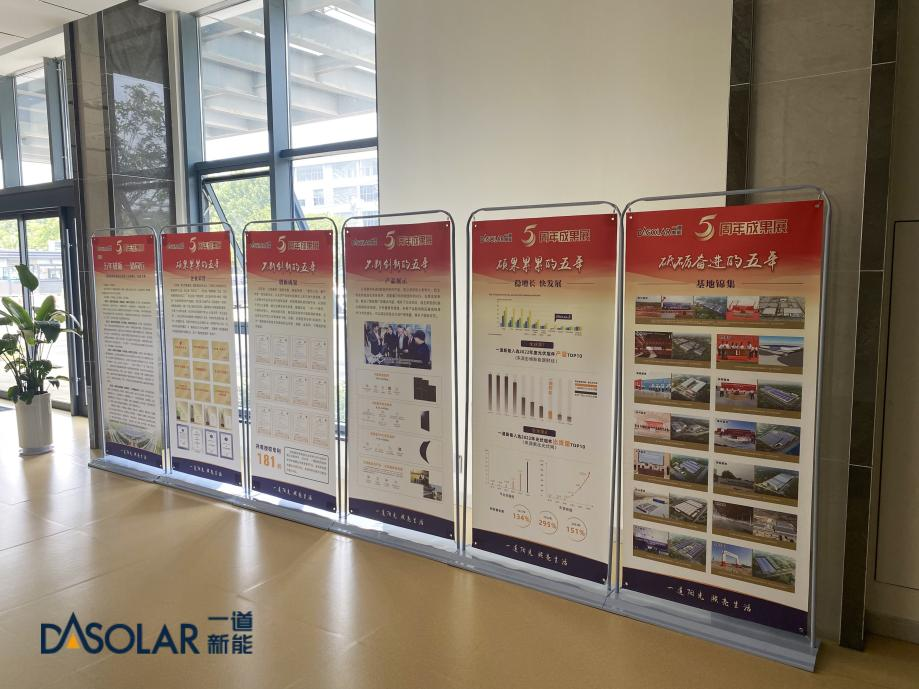 8月8日正值一道新能成立五周年,考察途中,胡亚波一行参观了一道新能5周年成果展示板。五载筚路蓝缕,一路步履铿锵,五年来,一道新能始终坚持研发为先,在迈向碳中和的路上,用持续的科技创新与数字化赋能绿色可持续发展。未来,一道新能将继续积极履行社会责任,持续深耕先进技术,用高品质、高可靠、最优性价比的光伏产品助力全球能源转型升级,为实现双碳目标贡献一道力量。