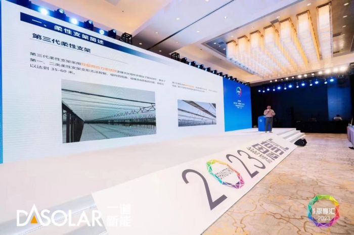 本次活动中,一道新能应用技术部总监何春涛先生受邀发表了《柔性支架——突围道路上的尖兵》主题演讲,就一道新能柔性支架的特性及应用案例展开具体介绍。
