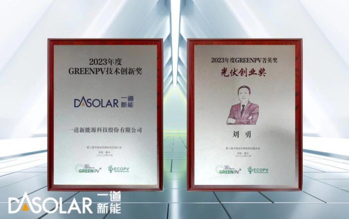 在8月17日举办的“GREENPV大会奖”颁奖盛典中,一道新能荣获三项大奖:2023年度“GREENPV技术创新奖(光伏电池类)”,“GREENPV技术创新奖(光伏组件类)”,充分彰显一道新能在N型TOPCon光伏电池和组件研发及产业化技术创新等方面的优异成就和突出贡献;一道新能董事长、总裁刘勇先生荣获2023年度“GREENPV菁英奖-光伏创业奖”,以此表彰其创立一道新能五年即进入光伏TOP10、销售突破百亿、TOPCon新技术市场名列行业前三的突出贡献。未来,一道新能将加快技术创新,加强协同合作,坚持用数字化、智能化降低产品能耗,用绿色低碳赋能产品的全生命周期,积极携手产业链上下游企业,共建绿色供应链体系,共创绿色零碳未来。