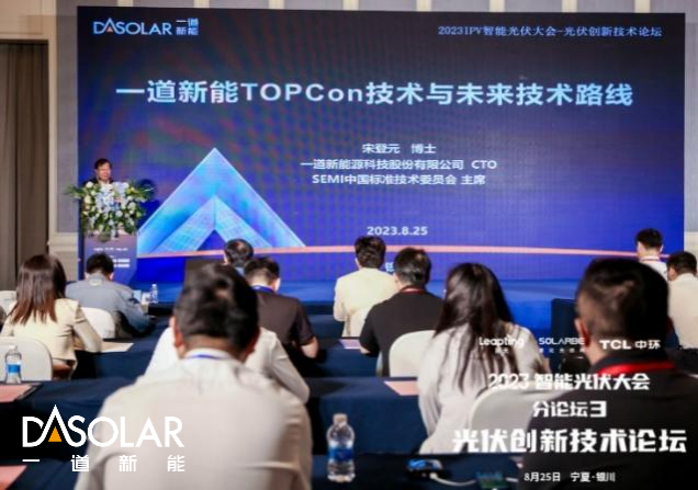 8月25日,由中国能源研究会主办,银川市人民政府、索比光伏网联合主办的2023智能光伏大会在宁夏银川隆重举行。来自光伏骨干企业、高等院校、研究机构代表300余人出席了大会,中国能源研究会理事长史玉波、银川市委常委、市政府常务副市长麦欣甫等领导为大会致词。一道新能首席技术官宋登元博士在光伏创新技术论坛上发表了《一道新能TOPCon技术与未来技术路线》主旨报告,从光伏发电能源属性的维度,全面系统地论述了一道新能为什么从成立之初坚定不移的选择高效率、低成本的TOPCon电池技术路线,以及从1.0到3.0 Plus技术的发展,重点论述了TOPCon4.0的技术特征与未来的技术路线。