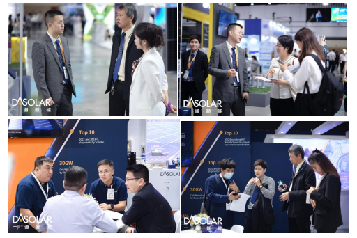 本届展会一道新能展台展出了54版型双面双玻N型组件、72版型单面单玻P型组件、78版型双面双玻N型组件以及轻质叠瓦组件等优质高效产品。作为N型技术的引领者,一道新能在追求高效率、高功率、行业领先的技术之路上不断前行,从业内最早布局N型TOPCon技术到持续的突破创新,目前公司N型TOPCon电池量产平均转换效率超过25.6%,最高量产效率超过了26%,实验室效率突破26.24%,开路电压730mV创造了世界纪录。