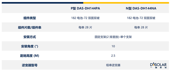 由一道新能供货的某国央企海南光伏电站,直流侧总装机容量为100MW,项目同时安装了一道新能N型TOPCon双面双玻组件和P型PERC双面双玻组件。在对比发电增益方案的设计中,N型和P型组件均采用28片组件为1串的布局,这种巧妙设计保证了组件在特定工作条件下的最佳性能。每17或18串组件接入一个196KW组串逆变器,共16台逆变器汇入一台容量为3.15MW的箱变中。通过对N型和P型组件在相同设计、安装条件下的发电情况进行详细对比,可得出相应的发电数据,为光伏电站的性能评估和优化奠定科学严谨的实测基础。