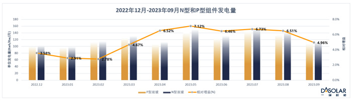 在2022年12月到2023年9月的实测数据中,同单位装机容量下的N型TOPCon组件平均发电增益高达5.22%,发电量远远高于同等条件下的P型PERC组件,N型组件性能再一次得到实力验证。