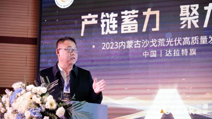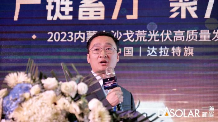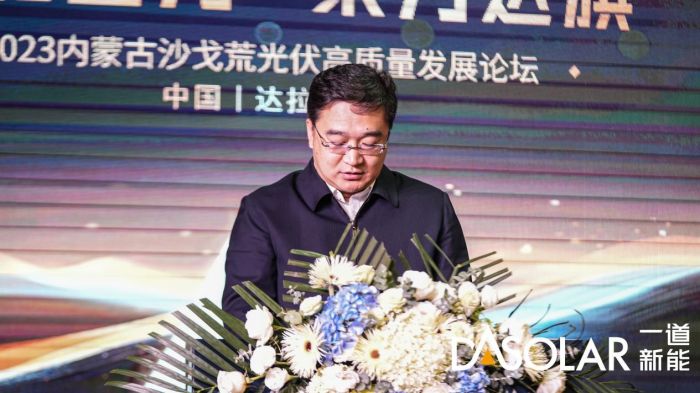 随后,内蒙古达拉特旗旗委常委、政府副旗长张伟雄先生为本次活动做开场致词。张副旗长表示,只有产业协作才能互惠共赢,只有抱团取暖才能抵御波澜,只有改革创新才能行稳致远。达拉特旗将积极融入新发展格局,秉承创新驱动、绿色发展、高效循环的理念,积极探索既符合光伏产业发展规律,又符合达拉特地域特色的发展模式,加速推动光伏产业向高端化、智能化、绿色化迈进。