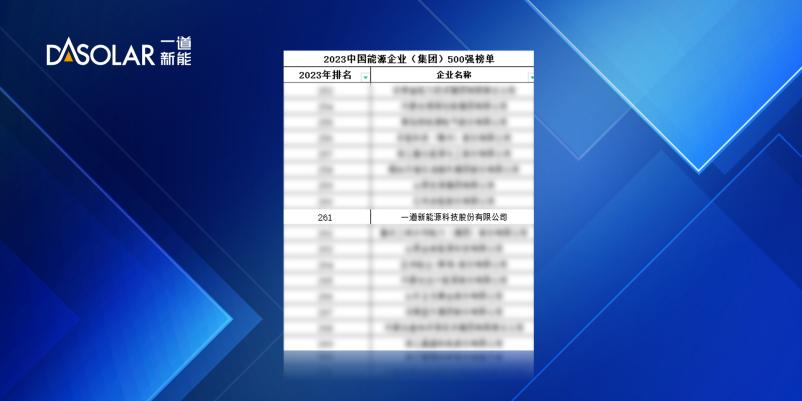 近日,《中国能源报》发布2023中国能源企业(集团)500强榜单(以下简称“500强”),凭借行业领先的N型技术和稳健增长的全球化业务布局,一道新能入选2023中国能源企业(集团)500强榜单。