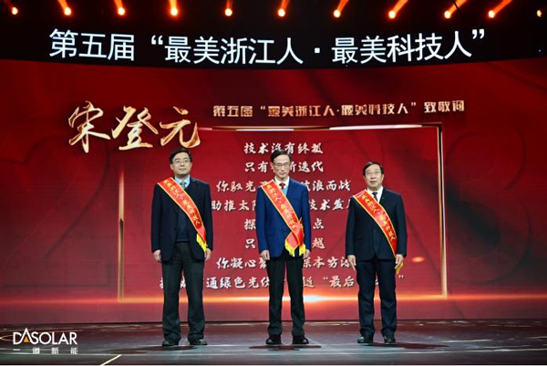 12月19日,由浙江省委宣传部、省科技厅主办的第五届“最美浙江人·最美科技人”发布仪式在杭州举行,作为我国产业化晶体硅高效电池技术的开拓者和领军者的一道新能首席技术官宋登元博士当选。本届共有10位来自科研生产一线的杰出科技工作者获此殊荣,每位获奖者都是在各自专业领域作出突出贡献的科技报国者。