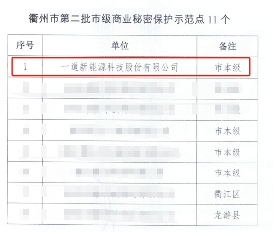 近日,一道新能更是凭借在知识产权保护领域的优异表现被评为衢州市第二批市级商业秘密保护示范点,再次彰显了公司在光伏产业领域持续创新做出的贡献得到了认可。