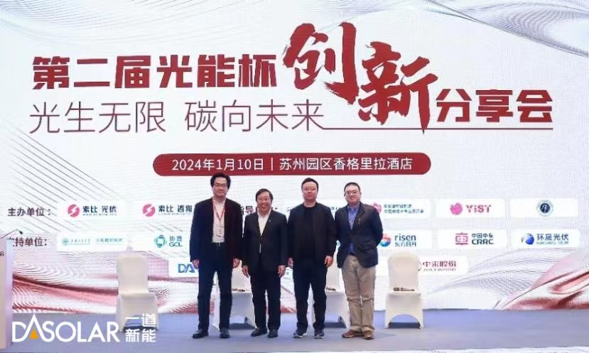 2024年1月10日,索比光伏网主办的第二届光能杯·创新分享会在苏州隆重举行。一道新能首席技术官宋登元博士受邀发表了《一道新能TOPCon最新技术创新与产业化进程和趋势》的主旨报告并参加了“光伏行业过去、现在和未来的思考与探索”的高峰对话,就光伏行业面临的技术和市场热点问题展开了深度剖析。