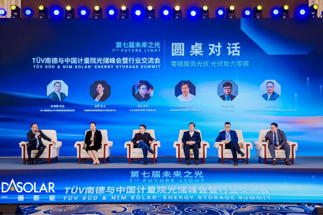 2024年1月24日,由TÜV南德与中国计量院主办的“第七届未来之光TÜV南德与中国计量院光储峰会暨行业交流会”在江苏常州盛大召开。本次峰会以“零碳服务光伏,光伏助力零碳”为主题,是光储行业的一次盛会,吸引了全球范围内知名专家、学者和企业代表参加。一道新能CTO宋登元博士受邀出席本次大会,并参加“绿色光伏 中和先锋”圆桌会对话。在同期举行的颁奖盛典上,一道新能凭借独特的技术创新和卓越的环保实践脱颖而出,荣获“光储行业最佳碳中和实践奖“,充分展现了一道新能对碳中和和可持续发展事业的高度关注和积极行动。