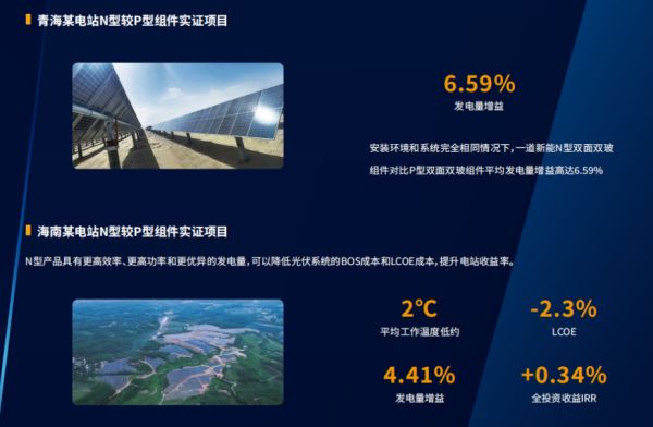 在低辐照条件下,DAON矩形组件在弱光发电和组件功率输出上均展露出优异的表现;双POE的封装结构,具有更强的防水性能,更优的水汽透过率,全方位保护组件的可靠性能输出。在青海某电站N型较P型组件实证项目中,DAON组件平均发电量增益达6.59%,在海南某电站N型较P型组件实证项目中,DAON组件平均发电量增益达4.41%,彰显N型硬核实力,实现组件在全生命周期内的最优价值。