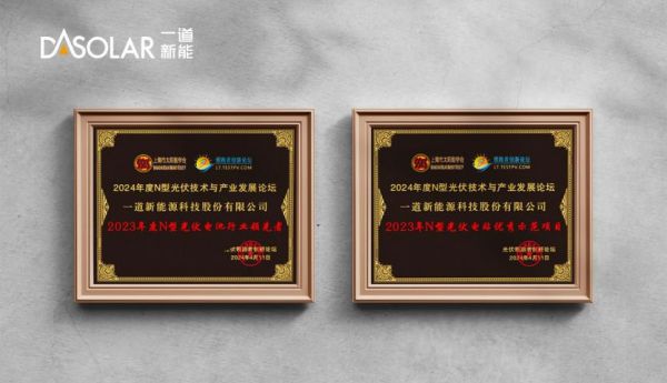 由于在TOPCon电池创新的杰出成就,在大会颁奖典礼上荣获“2023年度光伏电池行业领先者”奖;一道新能助力建设的陕西孟家湾15万千瓦光伏项目,使用一道新能自主创新的业内首款2000V光伏组件,荣获“2023年度N型光伏电站优秀示范项目”奖。