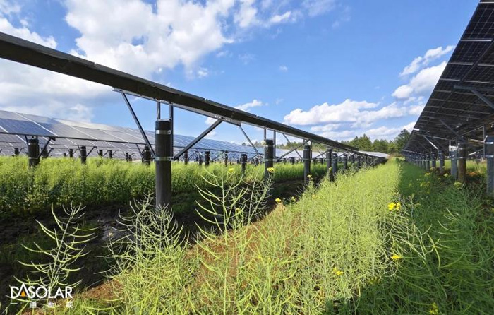 近日,由一道新能供货的广东省能源集团开发公司崇仁县航埠镇100MW林光互补光伏项目实现全容量并网发电。金黄花海在阳光的照耀下摇曳生姿,与湛蓝光伏板相互映衬,勾勒出一幅美丽的乡村画卷。
