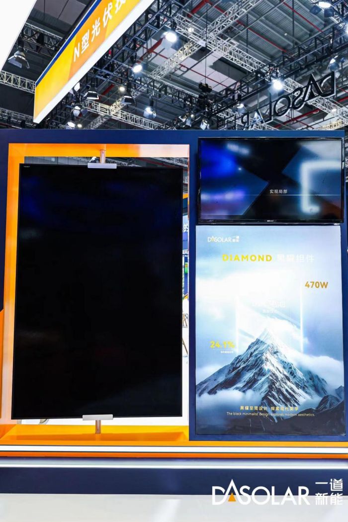 一道新能Diamond系列BC组件,简称DBC组件,以N型技术为基础,采用了背接触N型BC电池,正面无栅线,优雅大气能完美融入建筑外观,能有效避免正面栅线对光的遮挡,提升电池的转换效率,具有更低的功率温度系数,同时在组件功率和转换效率上也有大幅提升,能广泛适用于分布式项目,该产品将在四季度实现量产。