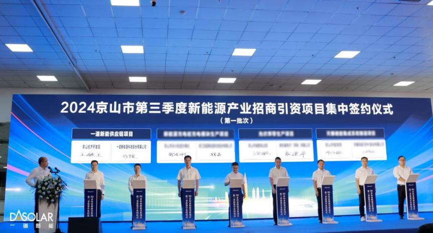 投产仪式现场,京山市委书记张勇发表致辞,张书记表示,近年来,京山以入选全国整县推进屋顶分布式光伏发电试点县为契机,抢抓新风口,布局新赛道,推动光伏新能源产业聚链成群成势见效。一道新能京山生产基地在20个月的时间里完成一期、二期项目建设,年产10GW的N型高效光伏组件全面投产,刷新了项目建设的京山速度,将进一步助力产业集群更好更快的发展。今后,京山政府也将持续优化营商环境,着力推动企业达产达效,为荆门市建设全国重要新能源及储能示范基地贡献力量。