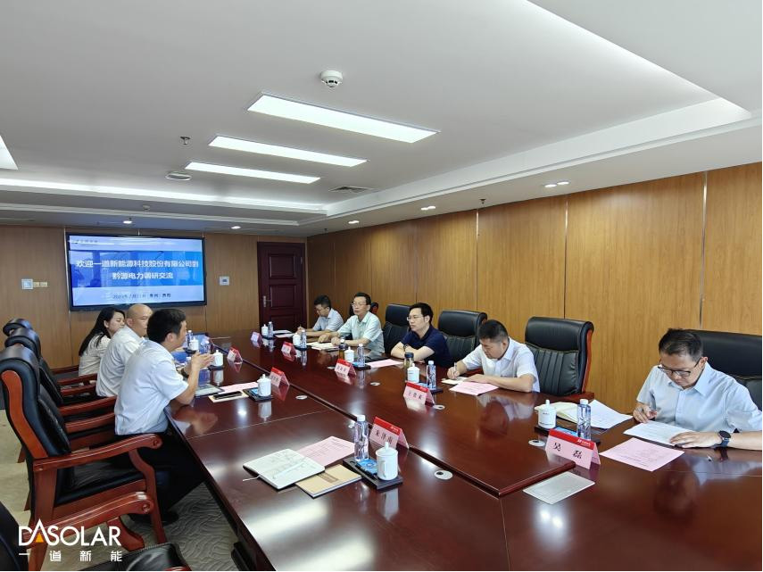 近日,一道新能中国区销售总经理刘付炯先生一行拜访贵州黔源电力股份有限公司(以下简称“黔源电力”)党委副书记、总经理彭松涛先生,双方就光伏技术发展趋势、科技创新项目、专利保护等议题展开深入的探讨和交流。黔源电力党委委员、副总经理王贵来先生,一道新能大区总监许俊先生等领导及相关人员出席会议。