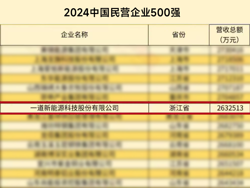 10月12日下午,全国工商联在甘肃兰州发布“2024中国民营企业500强”榜单,凭借稳健增长的经营业绩和创新卓越的科技实力,一道新能跻身“中国民营企业500强”榜单。