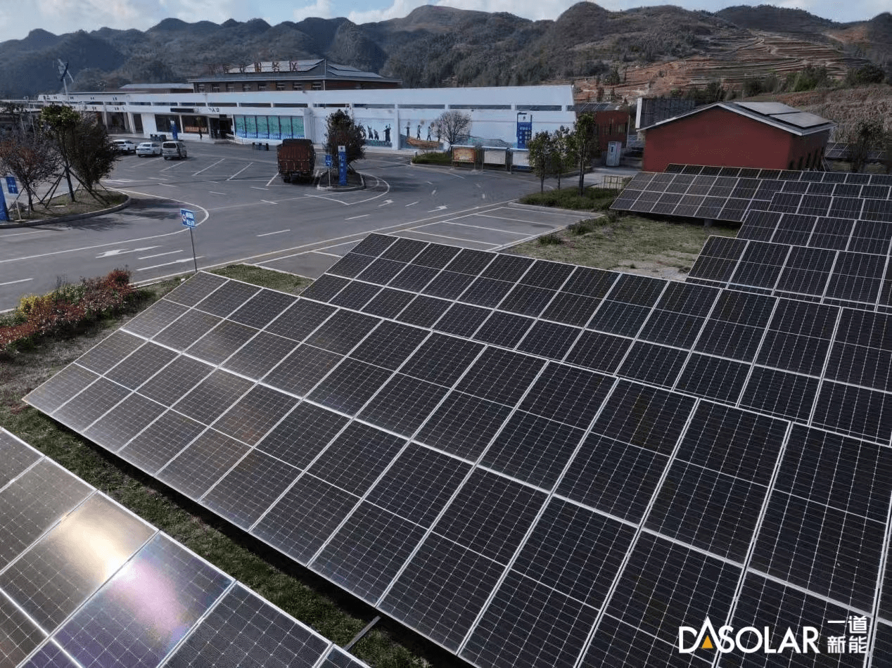 在中国贵州,一道新利用高效N型光伏组件,将光伏技术与高速公路建设相结合,在毕威高速沿线互通、收费站、服务区、停车区及边坡等区域建设分布式光伏发电站,并在服务区装设了快速充电桩、小型风机、储能设施及乘用车光伏停车棚,打造了省内首个“风、光、储、充”一体化能源供给服务区,为区域的可持续发展提供了有力支撑。
