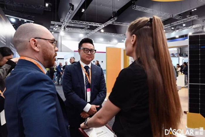 作为人均光伏装机量最高的国家之一,澳大利亚光伏市场开发较早且相对成熟,近年来,一道新能领先性高功率产品、差异化应用产品等在澳大利亚市场收获了良好的客户口碑。此次展会,一道新能展出了黑组件系列440W DAON 4.0双面双玻组件,625W高效双面双玻组件,470W DBC组件,475W轻质带框组件等产品,其中黑组件产品以深邃优雅的夺目外观和硬核卓越的产品性能吸引了众多参展者驻足停留。黑组件系列产品采用革新性镀膜技术和无色镀膜玻璃,光线能更好地被吸收进入组件,提升组件发电量;黑电池、黑边框、透明背板等多样化客制选配,带来极致典雅的外观体验,创新性版型设计,在运输、搬运、安装等方面体现高效便捷的优势,让分布式项目兼收功能性和美观性。