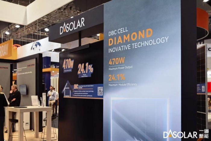 光伏行业的发展离不开创新技术的进步和迭代,作为N型技术的引领者,一道新能在N型TOPCon领域深耕不辍,目前TOPCon 4.0 Plus电池量产平均效率突破26.7%,开路电压高达742mV,组件最高输出功率达到610.15W,全面积组件转换效率达到24.02%,多次打破大面积TOPCon电池效率的世界纪录。同时公司在创新型技术研发方面持续探索,此次展会上亮相的DBC组件,以N型技术为基础,采用了背接触N型BC电池,正面无栅线,能有效避免正面栅线对光的遮挡,提升电池的转换效率,具有更低的温度系数,在组件功率和转换效率上也有大幅提升,优雅融入建筑外观的同时能广泛适用于分布式项目。