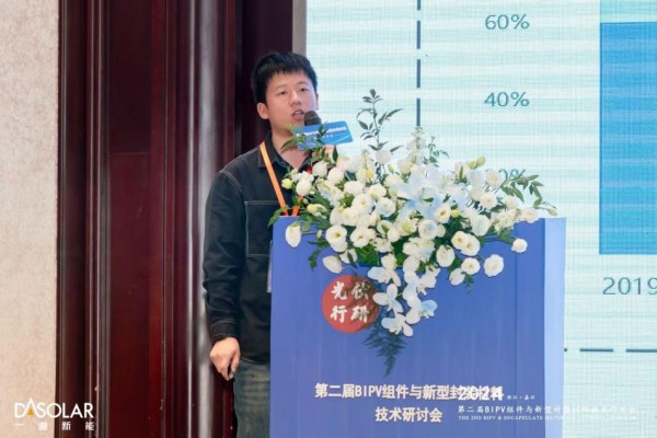 在主旨报告环节,一道新能产品开发经理刘培培先生表示,作为国内领先的轻质光伏组件供应商,一道新能推出的工商业屋顶BIPV系统解决方案,采用创新设计将轻质光伏产品集成到建筑材料中,如屋顶、墙面等,完美贴合建筑外观的同时提供高效、稳定的发电能力,兼具能源供应与建筑美学功能。