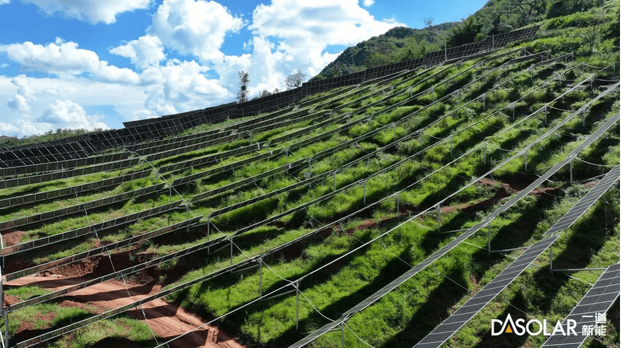 近年来,一道新能深耕全场景光伏系统解决方案,在山地光伏技术创新上取得了显著突破。一道新能自主研发的柔性支架具有高净空、大跨距、高安全性三大优势,较好地解决了传统光伏支架占用土地多、复用难度大等痛点,能更好地助力土地综合复用,有效推动了山岳地区“光伏+”项目的应用普及。高净空、大跨距的设计特征在确保光伏电站高效运行的同时,最大限度地保护了山地原有植被的完整性与山区生物多样性,为实现碳达峰、碳中和目标贡献了绿色力量,彰显了双碳背景下的环保理念与实践。