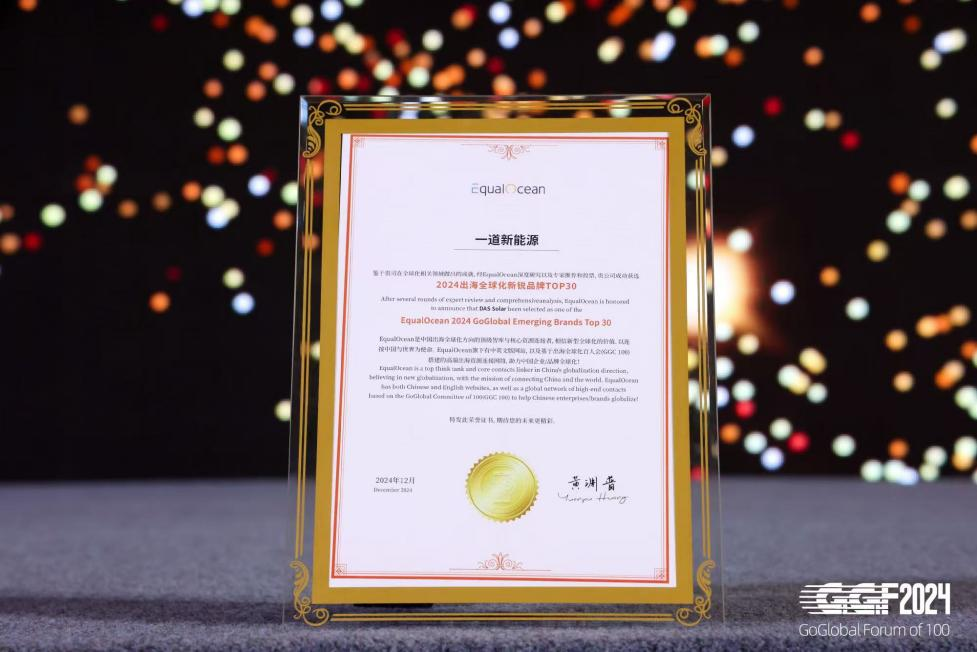 此次获颁出海全球化新锐品牌,是对一道新能全球化“出海”步伐的又一次肯定,站在全新的起点,公司将精准洞察国际化市场需求,进一步夯实本地化销售服务网络体系搭建,在全球化浪潮中稳健前行,提升在国际市场中的品牌影响力和服务竞争力,以技术创新为突破点,以差异化产品为利润点,拓展多元化合作渠道,打造双赢化商业模式,维持并扩大海外市场份额,为全球能源转型持续贡献一道力量。