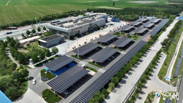 在山东省,一道新能携手山东高速,共同开发建设了青银高速济南东服务区项目。结合服务区不同区域的特性,项目创新性地应用了大跨距柔性支架系统,成功打造出国内首个“零碳服务区”,为绿色交通建设树立了典范。