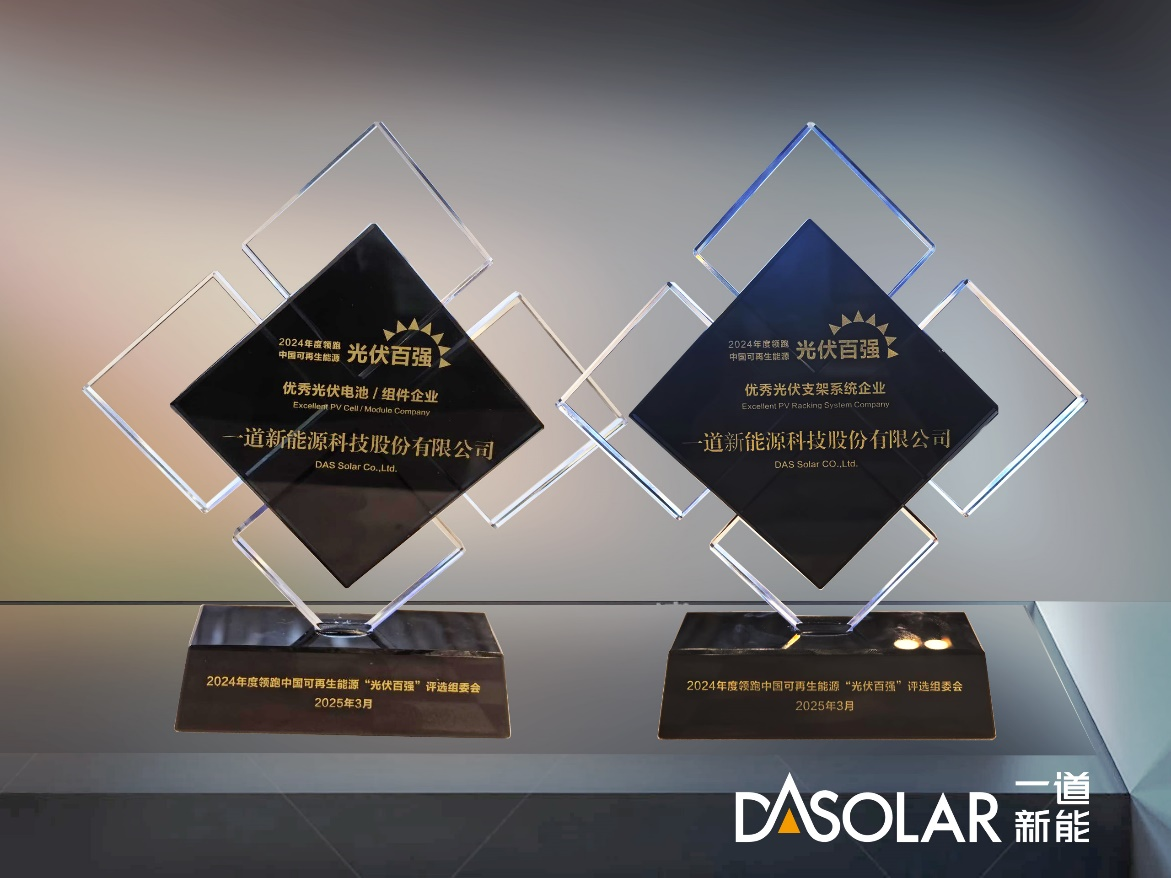 2025年3月12-14日,第十二届中国(江苏)国际新型光伏创新发展大会暨领跑中国可再生能源“光伏百强”颁奖典礼在江苏南京举行,凭借业内领先的N型技术以及优异的产品口碑,一道新能获颁2024年度领跑中国可再生能源“光伏百强”优秀光伏电池/组件、支架系统企业奖。