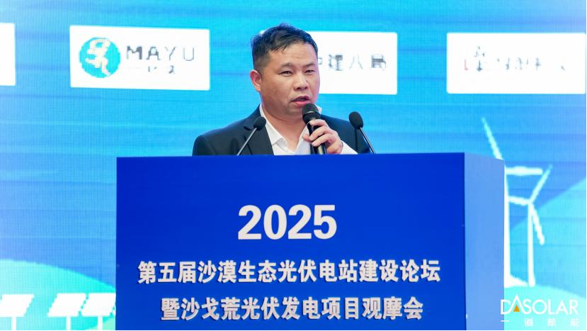 近日,第五届(2025)沙漠生态光伏电站建设论坛暨沙戈荒光伏发电项目观摩会在新疆乌鲁木齐召开。本次会议由中国光伏行业协会、中国投资协会主办,来自政府部门、行业组织、电站投资企业、设计院所、金融机构、科研机构等专家就当前沙戈荒生态光伏电站建设与运营中的热点、难点、焦点性问题展开探讨。一道新能应用技术部经理程辉受邀出席并作《沙戈荒柔性光伏支架系统解决方案》主题报告。