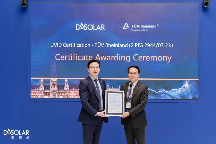 凭借卓越的抗紫外性能与系统化可靠性管控,一道新能DAON组件已荣获TÜV莱茵首张UVID认证证书,不仅为DAON组件在高原、中东等极端紫外线环境下的应用提供坚实保障,更为客户在投融资、项目开发、长期收益评估等层面增添信心。