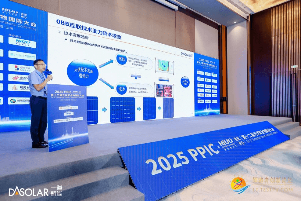在第十二届光伏聚合物国际大会上,戴建方先生发表《DAON 高效组件进展:0BB技术及当下的提效方案》主题报告。他表示,在光伏组件技术迭代浪潮中,0BB互联技术正成为行业降本增效的核心突破口。该技术不仅是HJT、TOPCon及BC等主流晶硅电池突破传统主栅焊接局限的终极发展方向,更是应对高温焊接工艺瓶颈、硅片薄片化技术挑战的关键解决方案。0BB技术通过去除电池正面主栅结构,大幅降低银浆用量,同时减少光学遮挡,显著提升发电效率。同时他指出,0BB技术的研发也面临着多重技术壁垒,需在高温焊接、极端温变循环及长期户外老化等严苛环境下,确保电池互联结构的可靠性与稳定性。一道新能在0BB技术研发过程中,通过创新工艺路线与材料体系,系统性攻克技术难题,在实现降低10%银耗量的同时提升组件功率至24%以上,并通过了三倍IEC标准可靠性测试,为行业提供了兼具经济性与可靠性的0BB技术发展范式。