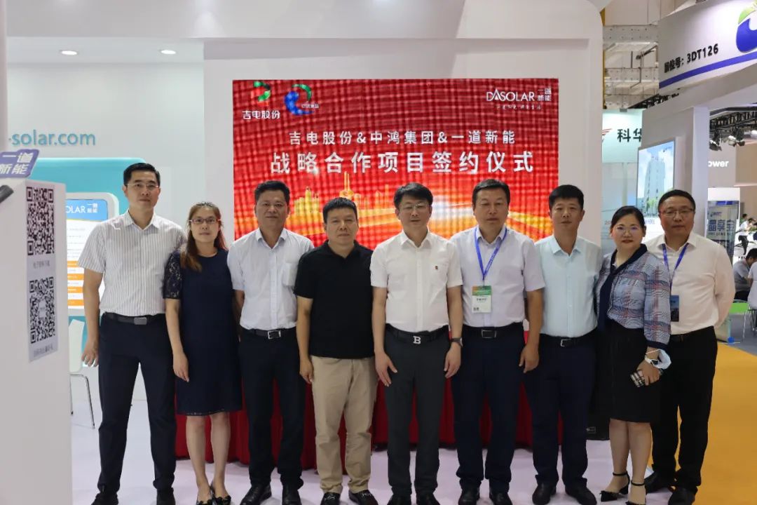 只有团结协作,才能共赢发展。以此次展会为纽带,一道新能与众多合作伙伴沟通洽谈、合作签约,不断深化战略伙伴关系,推动共赢之路越走越宽。展会现场,吉林电力股份有限公司、山东中鸿新能源科技有限公司、一道新能源科技(衢州)有限公司三方齐聚,进行了隆重的签约仪式。山东吉电新能源有限公司总经理王吏、山东中鸿新能源科技有限公司副总经理徐爱珍、一道新能董事长特别助理王春华分别代表三方进行了现场签约。